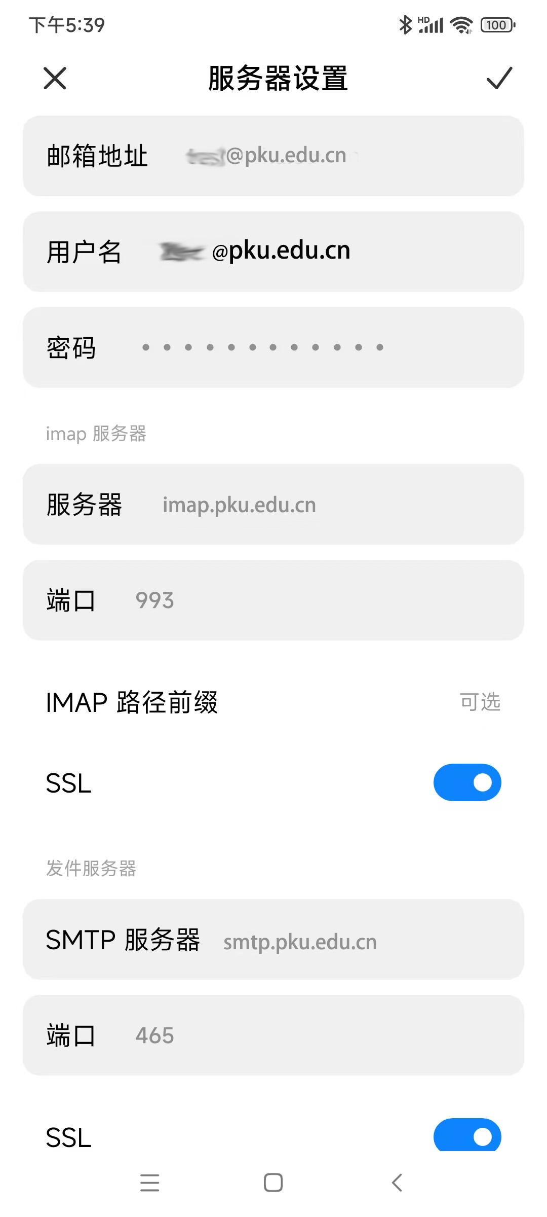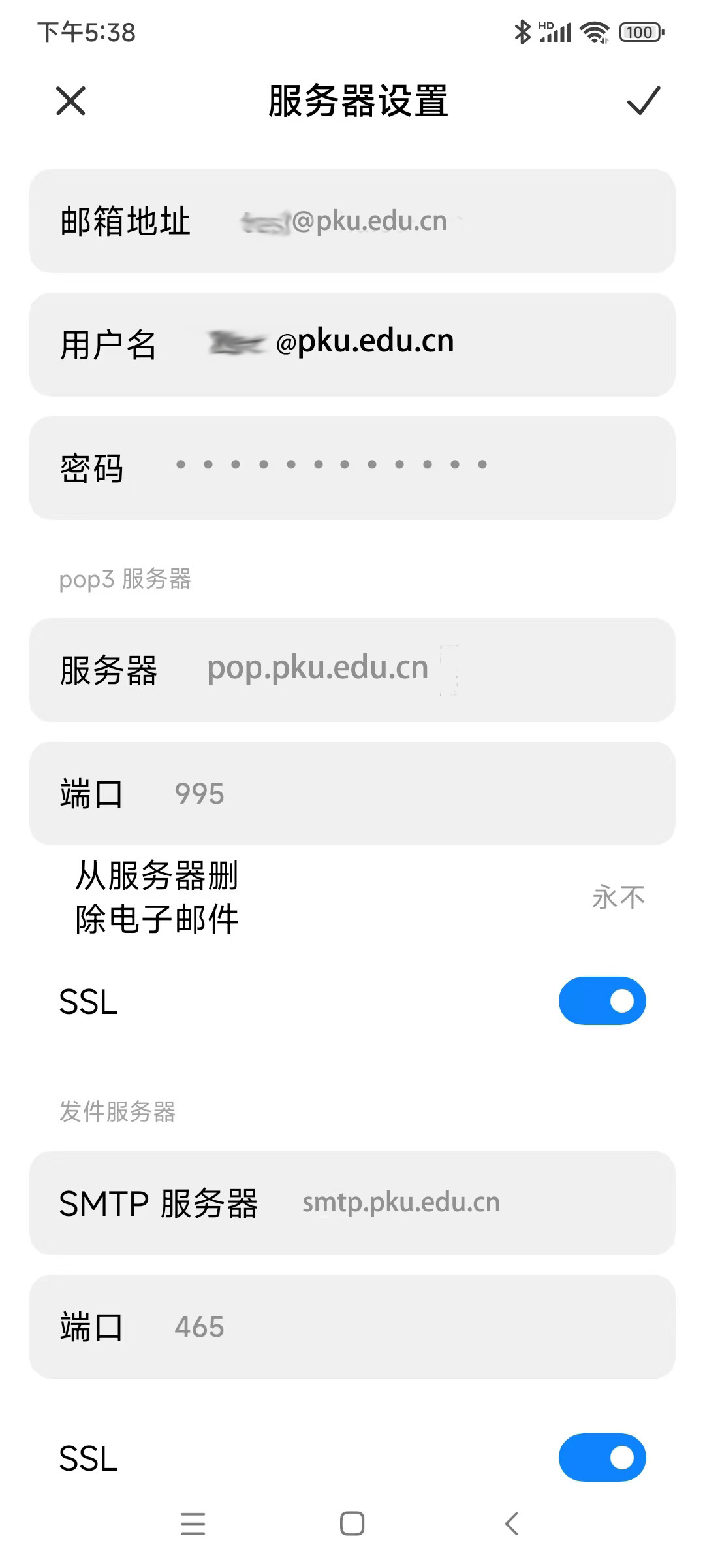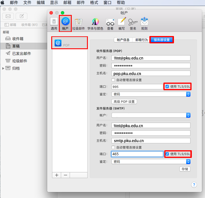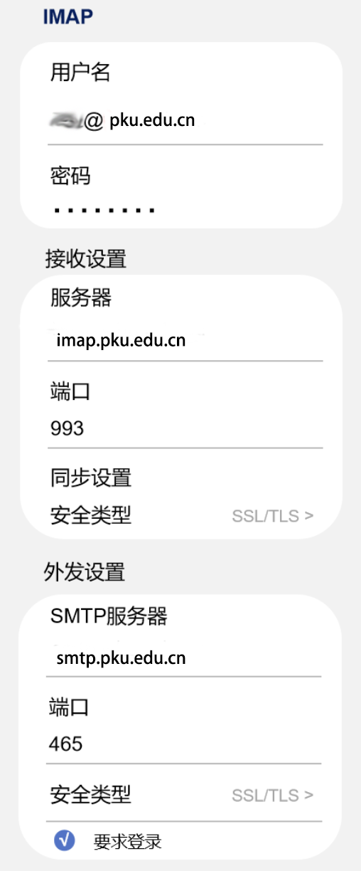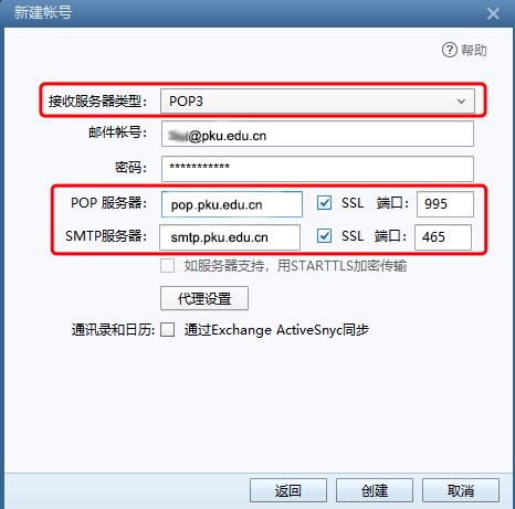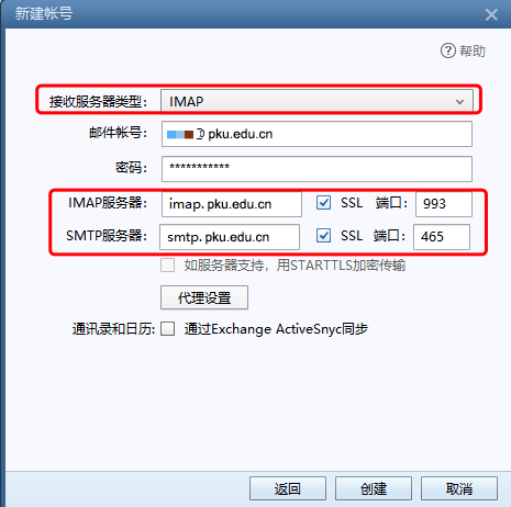 北京大学邮件系统客户端参数